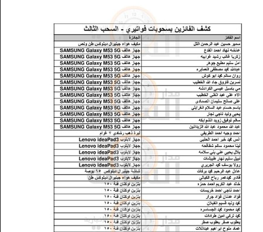 مدار الساعة - أعلن مدير عام دائرة ضريبة الدخل والمبيعات الدكتور حسام ابو علي اسماء الفائزين بجوائز السحب الثالث لتطبيق فواتيري التي اعلنت عنها الدائرة والبالغ عددها 140 جائزة مختلفة.