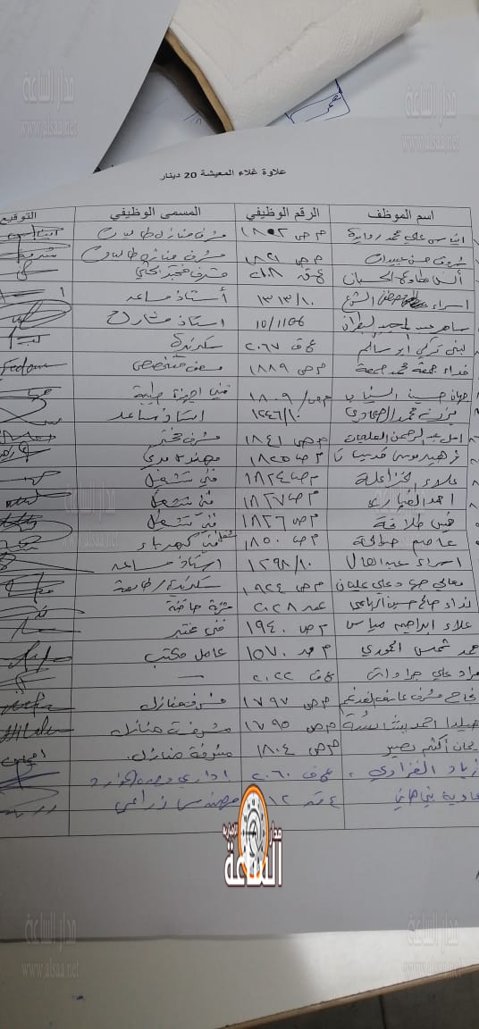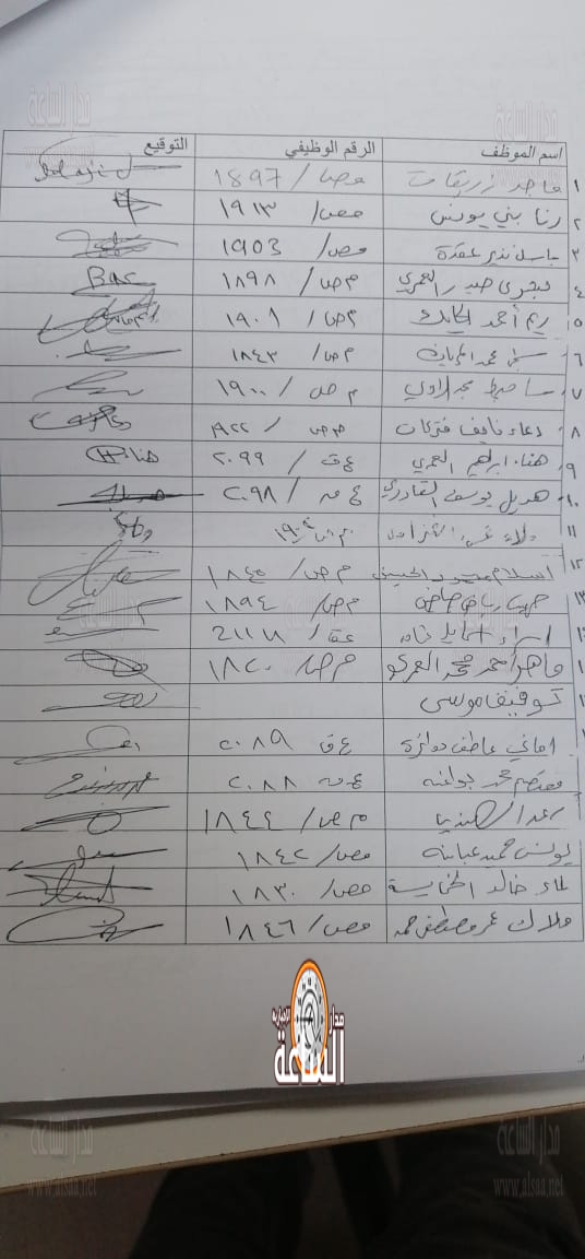 وتالياً اسماء الموظفين وكتابهم لرئيس الجامعة.