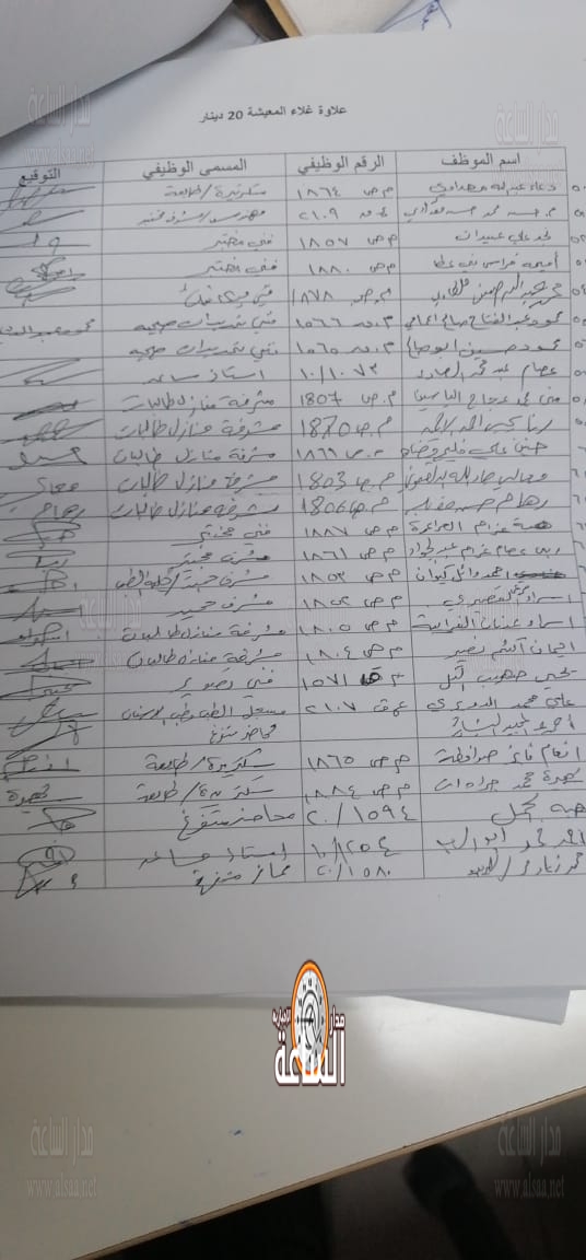 مدار الساعة - طالب موظفون في جامعة العلوم والتكنولوجيا الاردنية تم تعيينهم بعد عام 2013 بصرف علاوة غلاء معيشة لهم اسوة بباقي موظفي الجامعة.