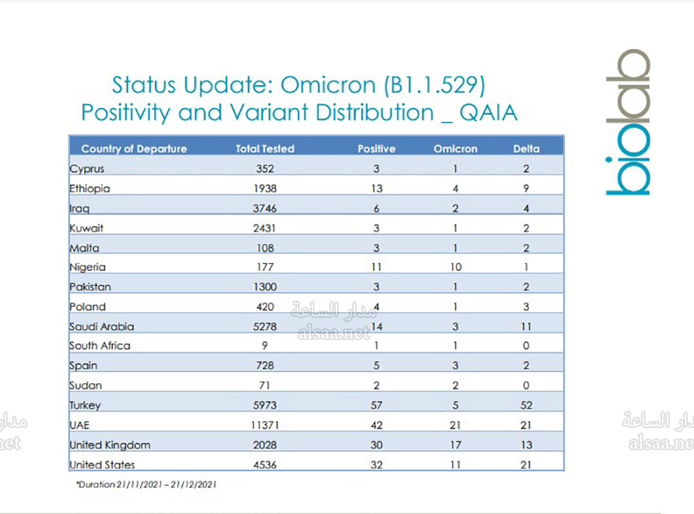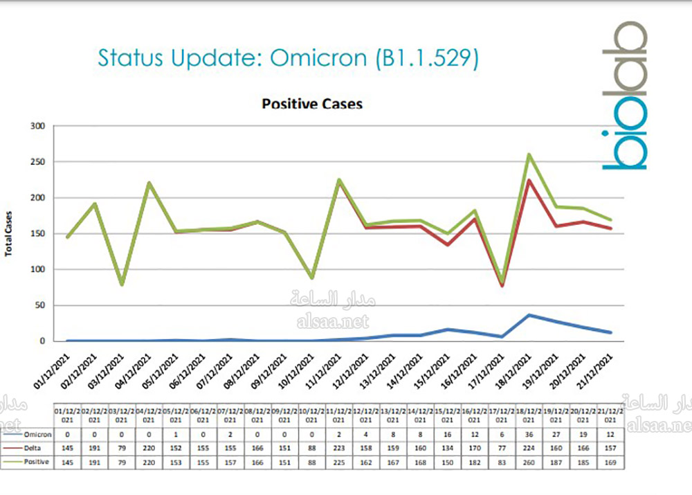 يذكر أن مختبر بيولاب الطبي هو من اكتشف أول 7 حالات أوميكرون في المملكة.