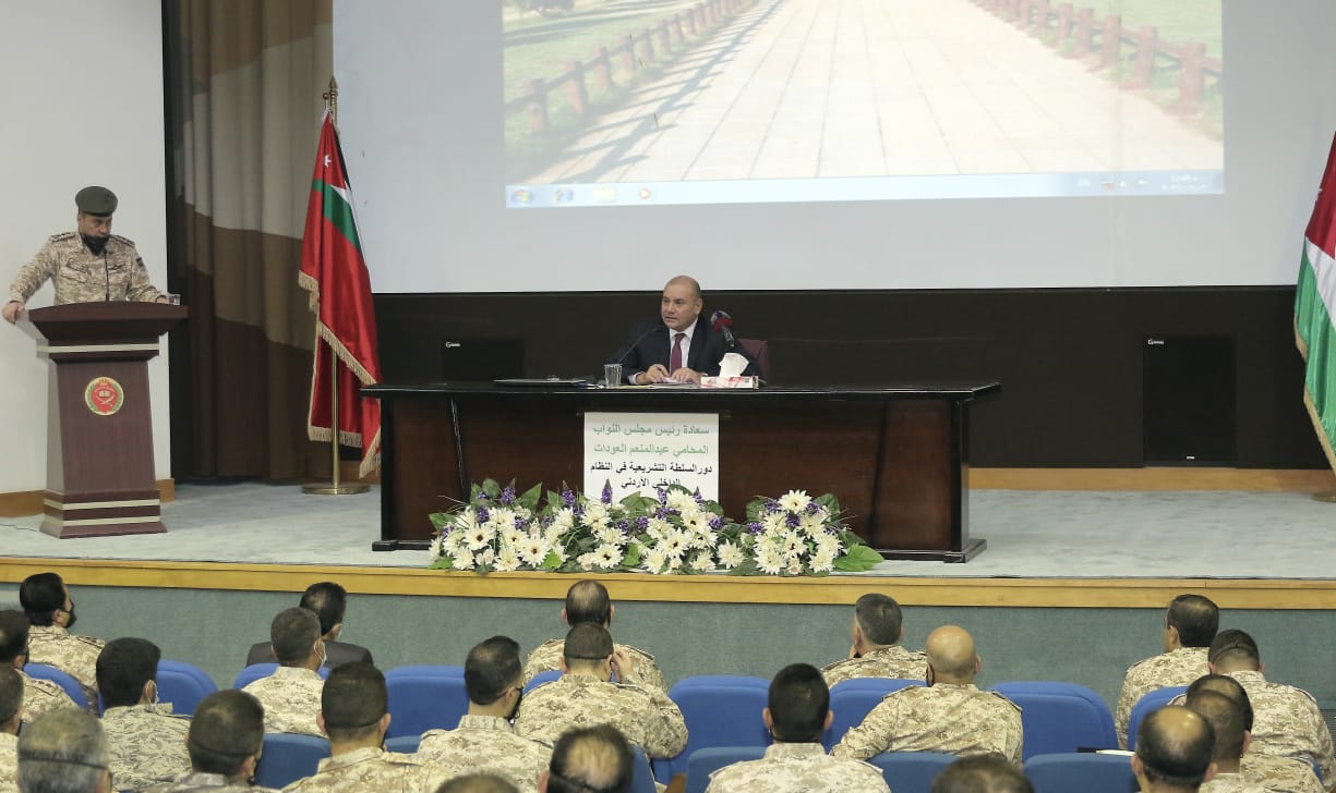 حديث العودات جاء في محاضرة له في كلية القيادة والأركان الملكية الأردنية، اليوم الثلاثاء بعنوان "دور السلطة التشريعية في النظام السياسي الأردني"، للدارسين في دورة الركن 61 المشتركة 25، والتي تضم عدداً من الدارسين من الدول الشقيقة والصديقة، بحضور آمر الكلية العميد الركن الدكتور ذياب الشوابكة وأعضاء الهيئة التدريسية.