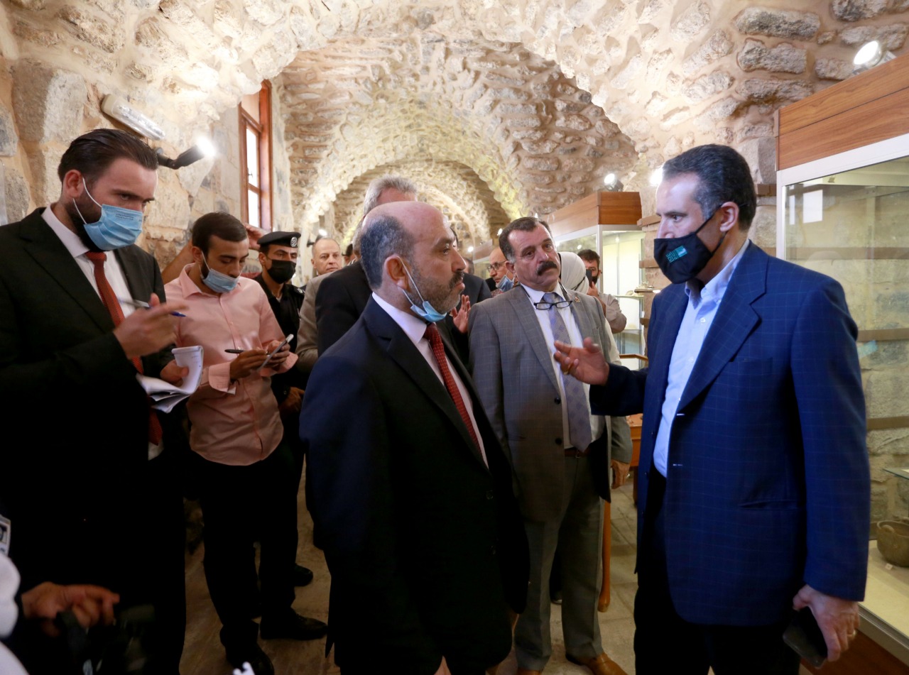 وتفقد الوزير الفايز متحف سرايا إربد، واستمع من مدير آثار المحافظة إلى إيجاز عن الواقع الأثري في المحافظة والأعمال الجارية لتطوير وتأهيل العديد من المواقع الأثرية.