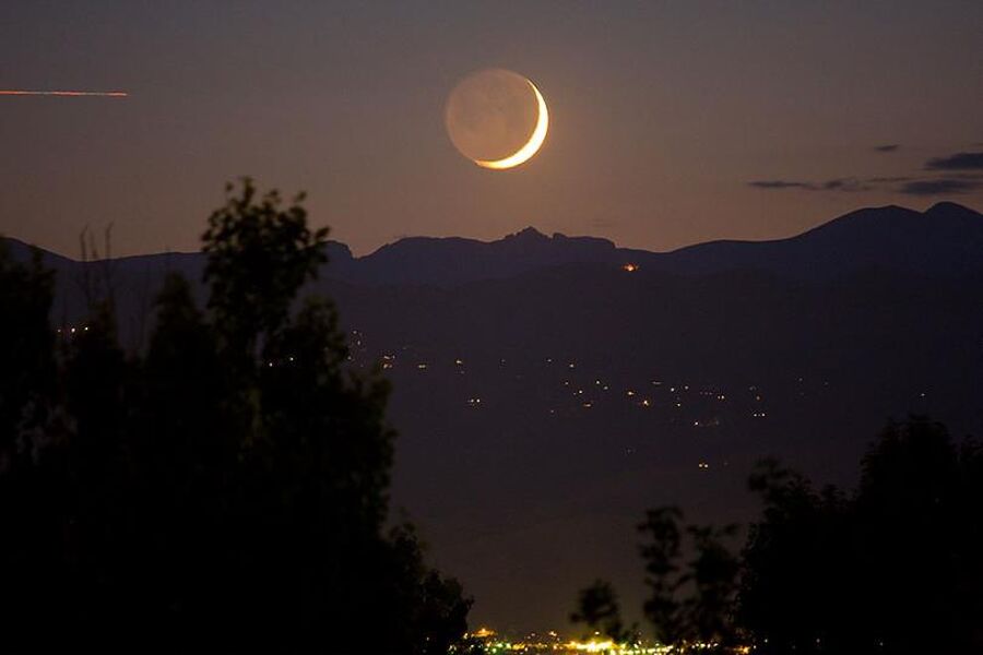 - رؤية الهلال غير ممكنة لا بالتلسكوب ولا بالعين المجردة من المناطق غير الملونة.
