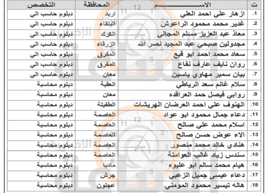 مدار الساعة - دعت دائرة ضريبة الدخل والمبيعات اليوم الخميس التالية أسماؤهم للاستكمال اجراءات التعيين مصطحبين معهم الاوراق الثبوتية، ومن يتخلف يعتبر مستنكفا.