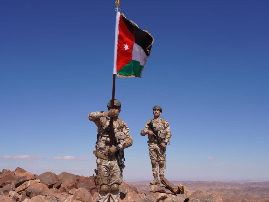 مدار الساعة - رفع عدد من مرتبات القوات المسلحة الأردنية، اليوم الثلاثاء، علم المملكة الأردنية الهاشمية على أعلى قمة جبلية في الأردن، جبل "أم الدامي"، وذلك تزامنًا مع احتفالات المملكة بيوم العلم الذي يصادف السادس عشر من نيسان كل عام.